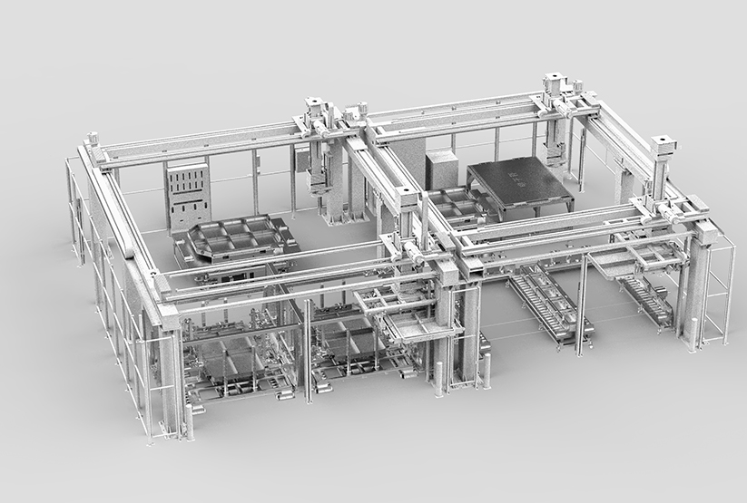 该自动线旨在实现模组自动智能化装配及测试,包括组件清洗、组件涂胶、组件上线、电堆堆叠、侧板焊接、BUSBAR焊接、模组打码、绝缘测试、EOL测试及产线MES等功能。